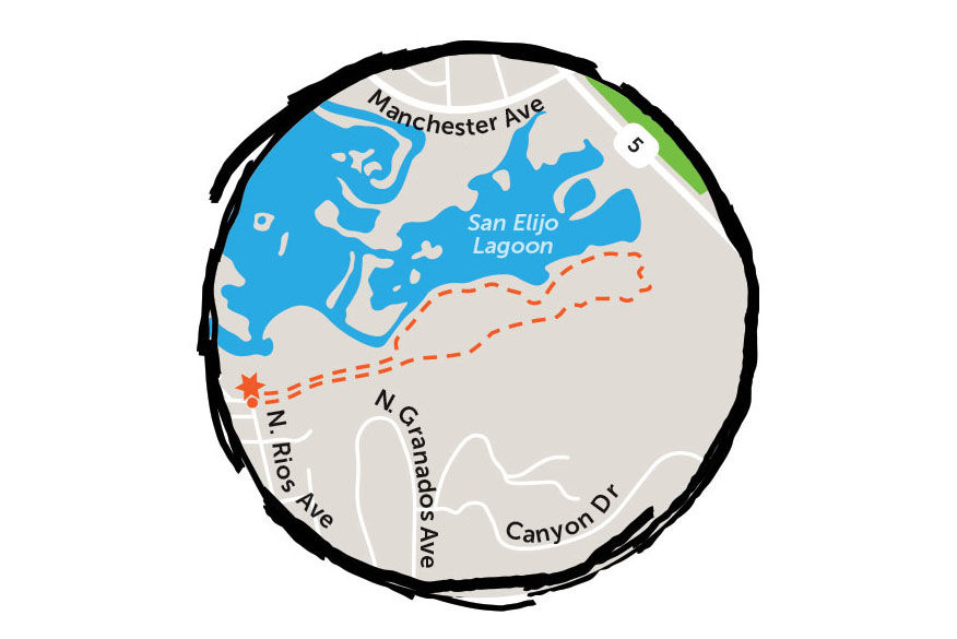 Start at the trailhead at the intersection of North Rios Avenue and Solana Point Circle in Solana Beach. Follow the “one way loop” arrow from the Annie’s Canyon Trail sign.
