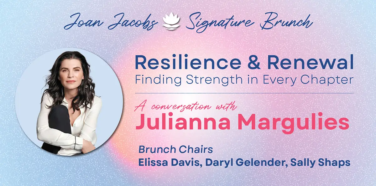 JFS’s inaugural Brunch welcomes Julianna Margulies as our featured guest. An Emmy, Golden Globe, and SAG Award-winning actor, best-selling author, and passionate advocate for social change, Julianna is best known for her roles in ER and The Good Wife. Julianna uses her platform to champion causes close to her heart, including Holocaust education and women’s empowerment. Through her inspiring words, Julianna will help us explore what it means to embrace our strength, lift each other up, and move forward with purpose.