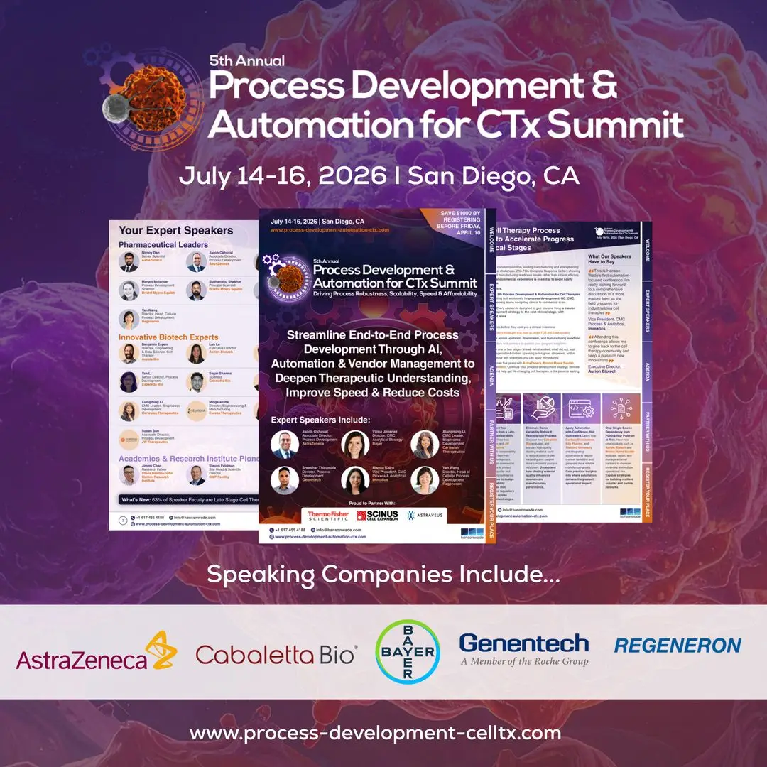 That’s why the 5th Process Development and Automation for Cell Therapies Summit returns in 2026 – this time in San Diego.