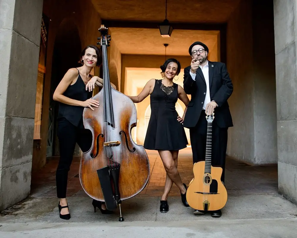 The Besos Jazz Trio has been stirring up audiences with vibrant performances of music and dance since 2017. These worldly performers are a study in balancing traditions. With roots in Mexican ballet folklórico, Claudia Gomez plays percussion and tap dances. Evona Wascinski, from Poland, brings a classical virtuosity to the upright bass. Beston Barnett, a Nashville native, plays manouche guitar and sings in five languages. “We keep it loose but alive; we leave space for what each of us does best,” says Wascinski. Together, they improvise, sing, and dance their way through an eclectic mix of swing tunes, sambas, boleros, and musettes.