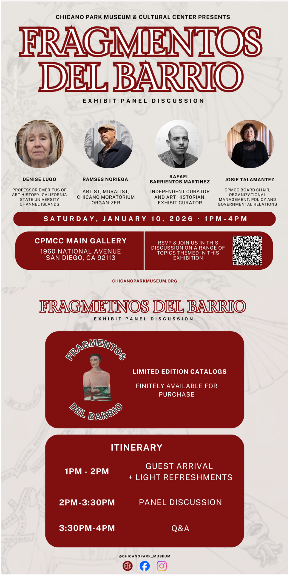 The panel will feature artist Ramses Noriega, curator Rafael Barrientos, CPMCC founder Josie Talamantez, and Professor Denise Lugo. This conversation provides an opportunity to connect more deeply with the art and the people behind it.