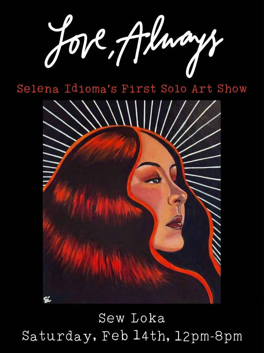 Join us Saturday, February 14th from 12pm-8pm as we transform Sew Loka into an art gallery for Selena Idioma’s First Solo Art Show.