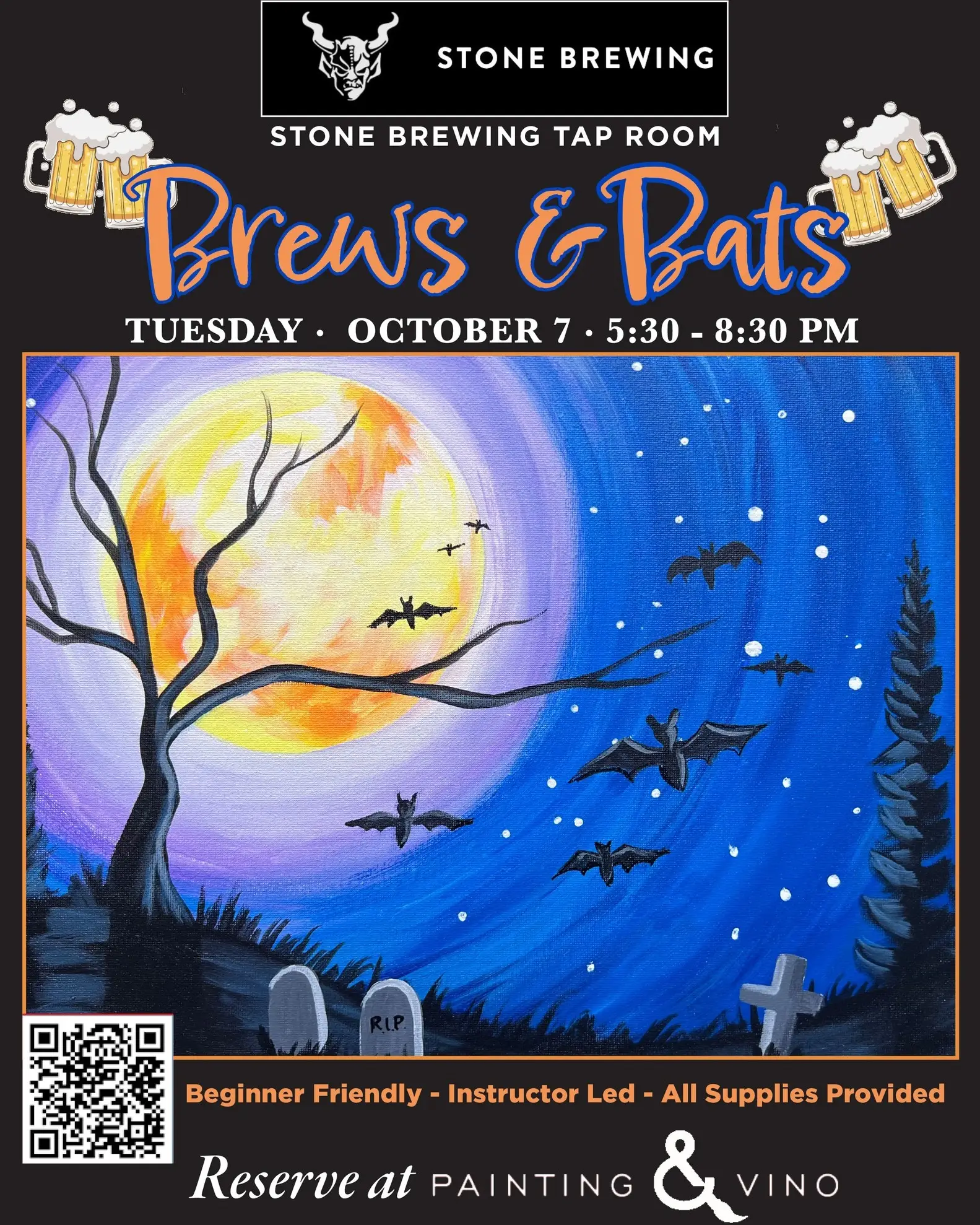 Join us on the Stone Brewing patio for a spooktacular night of painting, sipping, and soaking in the Halloween vibes! ✨