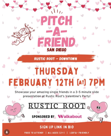 Pitch-A-Friend Valentine’s Event at Rustic Root Gaslamp