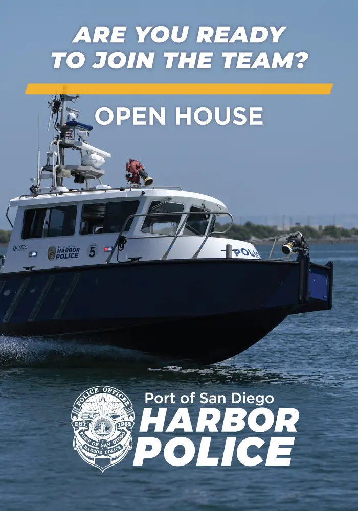 Want to learn more about the Port of San Diego’s Harbor Police Department and how you can make a difference in your community? Join us for an Open House on Wednesday, December 3, where representatives from the Background Investigation Unit and Human Resources will be available to answer your questions. In addition, there will be an opportunity to meet team members from the Dive Team, Drone Team, Training Unit, MARTAC, K9 Unit, and Dispatch.
