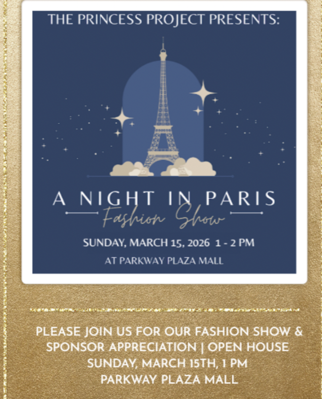 Celebrate the opening of the Princess Project at Parkway Plaza with a Night in Paris Fashion Show on Sunday, March 15, from 1-2pm! Guests will enjoy a special afternoon of fashion while supporting The Princess Project, a nonprofit that provides free prom dresses and accessories to high school teens, and will have an exclusive sneak peek of the Dress Giveaway Store before the official giveaways begin this spring. Come celebrate fashion and community at this magical event at Parkway Plaza!