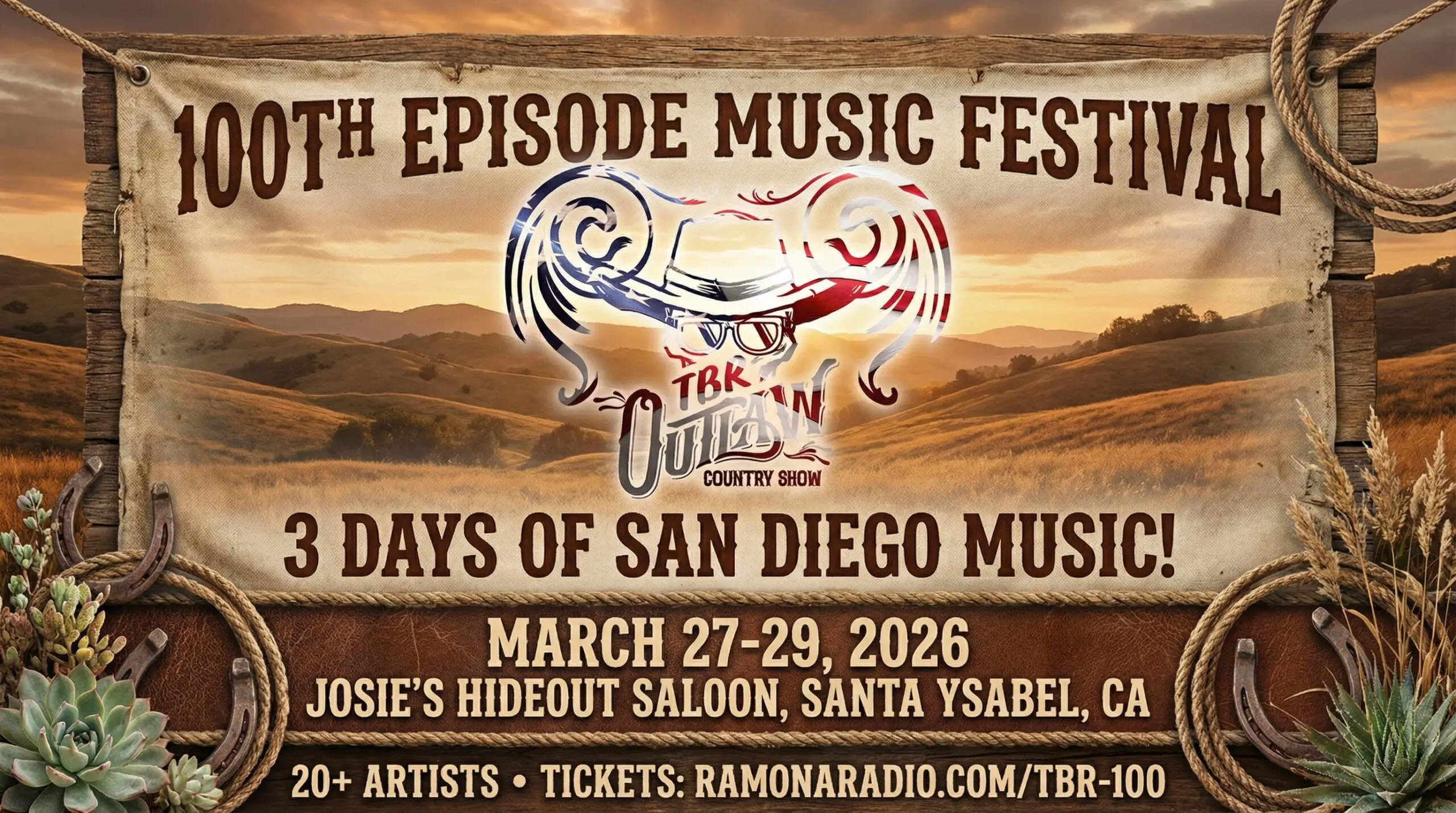 Celebrate 100 episodes of The Travis Billy Ross Outlaw Country Show with a three-day outdoor music festival featuring 20+ San Diego–area artists performing outlaw country, Americana, roots, folk, and rock. Enjoy full days of live music, on-site food, scenic Lake Henshaw views, camping with bonus late-night shows, and shuttle service from Ramona.