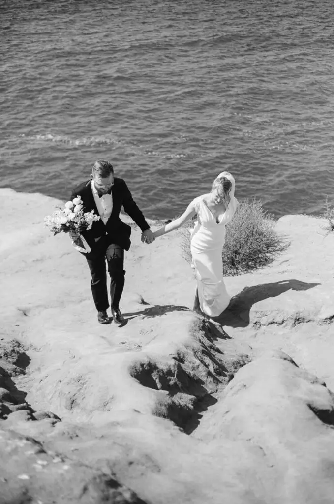 At Omni La Costa Resort & Spa, couples are crafting multi-day “wedding retreats” built around group fitness classes, Ayurvedic treatments, and hydration stations stocked with mineral-rich waters and botanicals. Sustainability has also become part of the experience, says Senior Catering Manager Jenna Nickl-Jones, with biodegradable décor, reusable elements, herbs in place of traditional florals, and even ceremony trees that can be replanted afterward. “There’s a move toward intention and minimalism,” she says. “Couples are prioritizing ease and well-being in every part of the weekend.”