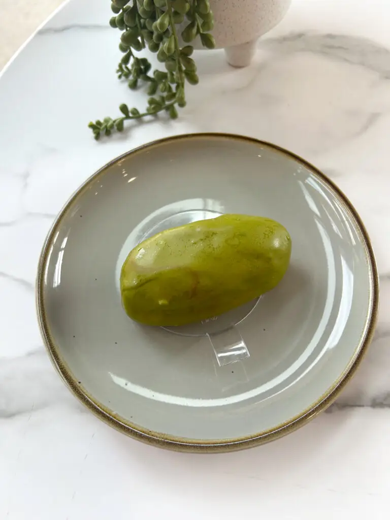 Pistachio is clearly having a moment, its iconically green mellow sweetness lending charisma to everything from espresso martinis to croissant fillings. (Consider also the Dubai-chocolate-ification of the universe.) If you’re a true pistachio fan, you’ll be delighted by this tromp l’œil of sorts, a pistachio-goes-meta treat from Desserts by Clement in Pacific Beach. You’ll find layers of pistachio crunch, pistachio praline, and pistachio whipped ganache, all wrapped up in a giant, pistachio-shaped, green-and-red-airbrushed white chocolate shell. Is it cake? No, it’s pistachio. – Samantha Lacy