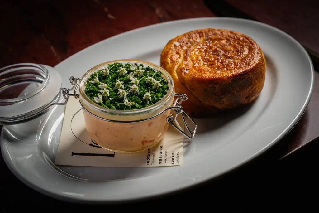 It eats like a thicker, fluffier scallion pancake, folded into pull-apart swirls and served with a salmon rillette. Monsod offers it on her date-night menu: bing; a Snake River Farms Denver-cut Wagyu with giant prawns, pommes purée, and haricots verts; and a chocolate mousse with fish-sauce caramel for under $100. –Troy Johnson