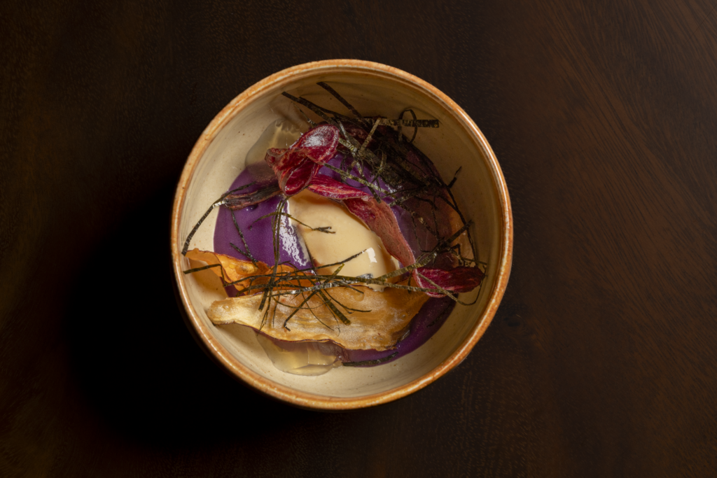 The reason I bring this up is because even though I’m not particularly enjoying the experience of this seaweed butter, it’s exactly what I want when I sign up for Lucien. I want risk. Lucien’s unique and pricey thrill is to pierce the safely oxygenated atmosphere of the usual restaurant experience (“here’s a flatbread and a thing with birria and melted cheese”) and get you out into uncharted food space. If you’re receiving a tasting menu and nothing makes you uncomfortable or maybe even say “oh, hell no” at least briefly, then the chef is giving you the khaki, unlimited breadsticks version of the experience.
