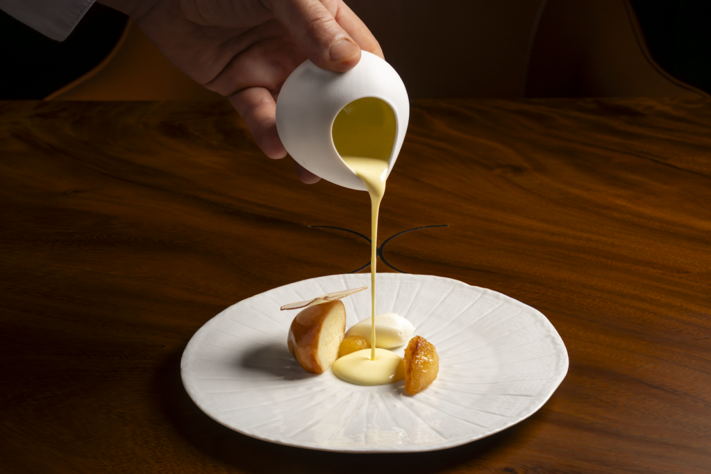 The egg is the single most humble, farmy object—one that us average so-and-sos cook very averagely multiple times a week. But, here, inside that raw grocery pellet is the most un-you concoction imaginable: a multi-layer dip of silken, fluffy food clouds (okay, fine, it’s just dashi custard and chantilly cream) and possibly the highest possible manifestation of the egg arts, all due respect to chawanmushi.