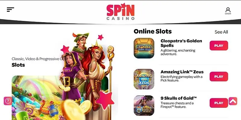 Spin favors web wallets, credit cards, bank transfers, and vouchers, with all transactions SSL-encrypted for safety and security. However, there are no crypto options, and payouts via other methods take 1-3 business days, though instant withdrawals are available for those using the InstaDEBIT electronic wallet option.