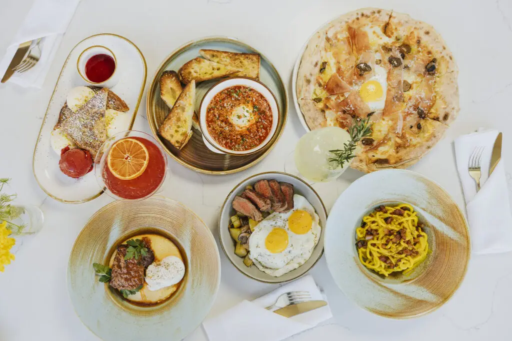 Sundays at Pazza Market & Cucina mean Italian brunch from 10 a.m. to 1 p.m., featuring a seasonal rotating menu of wood-fired Neapolitan pizzas, handmade pastas, steak and eggs, crispy polenta with short rib, gelato-topped French toast, and refreshing Italian spritzes and mimosas.