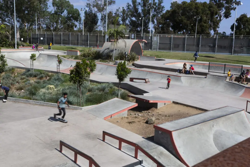 Doesn’t matter your age. If you’ve ever ridden anything with wheels and are still capable of experiencing joy, you’re gonna get a thrill out of a pump track. A smooth, undulating course for skating, biking, and scootering—it’s like ASMR for street sports. The Pacific Highlands Pump Track is 20,000 square feet, with a track for us newbies and a faster course for diehards, inspiring people who know their limits and have resolved to ignore them.