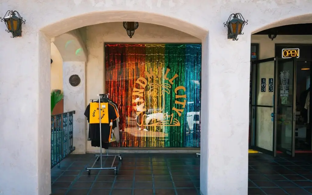 Yellow Mart and the theater have endured, and while unused buildings still dot the area, those teenagers can now make a loop between businesses that will look great on their Instagram stories: a few bustling cafés; Urban Donkey vintage store; Gabino’s, a Guy Fieri–approved spot for savory crepes. At night, locals flock to Rosemary HiFi, a listening lounge and wine bar owned by Adrian Romero, a Coachella Valley–raised kid whose first business, Hermano, was a florist’s shop turned if-you-know-you-know apparel brand. In glass windows, each storefront hangs posters promoting other local businesses and events. One beckons visitors to Field Day, Rosemary HiFi’s free, outdoor gathering of vendors, DJs, chefs, wine and beer makers, and activations.