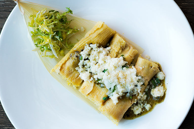 Expect duck tacos in tomato-árbol chili sauce, corn and goat cheese tamales (pictured), chile relleno in ancho-citrus sauce, a 32-ounce tomahawk rib eye and Maine lobster surf and turf, and, of course, designer margs (including one with acai spirit, limonada, orange, and serrano chili syrup). The space feels like an indoor-outdoor Mexican seaside resort I’d never be able to afford to stay at.