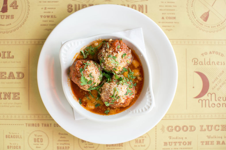 The antipasti of grilled asparagus is delicious, with brown butter and burrata acting as an infinitely more flavorful “fat replacement” for, say, an aioli. Silverton’s meatballs al forno (made of veal and pork) live up to their acclaim, dripping with herbal-carnivore flavor and served in a simple tomato sauce alongside the tastiest piece of grilled semolina toast I’ve possibly ever had. The roasted carrots in a bold cumin vinaigrette and ceci (chickpeas) are another standout. The octopus, too, is grilled perfectly, with a crisp skin and tender meat over a simple bed of celery, potatoes, and lemon. About the only “miss” we find on the starters menu are overcooked arancine (fried rice balls).
