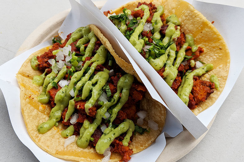 Owner Hector A. Lopez and his family already run several plant-based restaurants in Tijuana, including the stationary namesake. Their San Diego location specializes in vegan riffs on traditional meat and seafood tacos. But the adobada taco is the star. The housemade meat substitute is smothered in a flavorful marinade and topped with guacamole, cilantro, and onions—served on a corn tortilla. As for the “meat”? It’s made by pulling the protein from barley, rye, and wheat, creating a texture that could fool (or convert) even the most skeptical carnivore.
