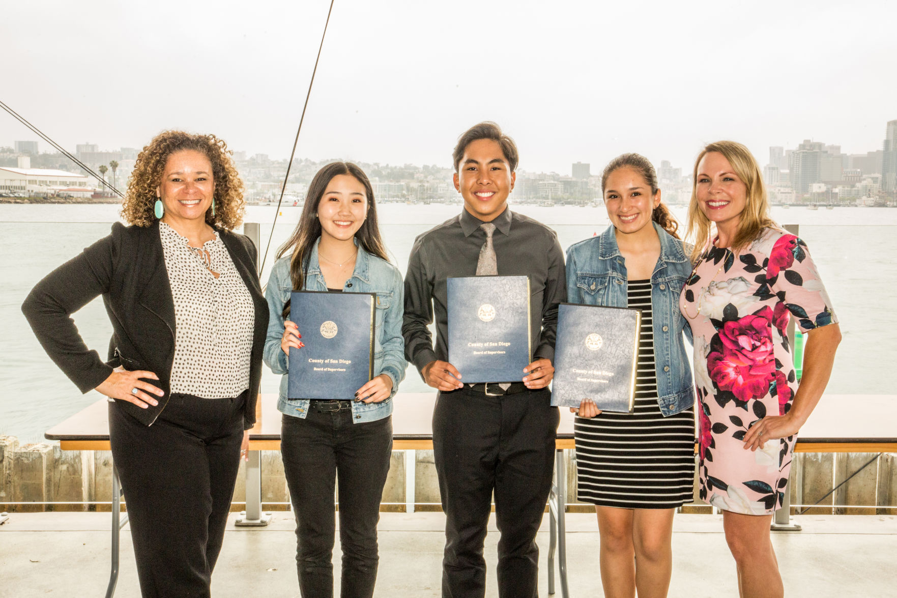 Colleen Dillaway and Chanelle Hawken of Cox Communications with Otay Ranch High School students Jessie Lee, Jedrick Zablan, and Vanessa Sevilla | Courtesy: Cox Charities