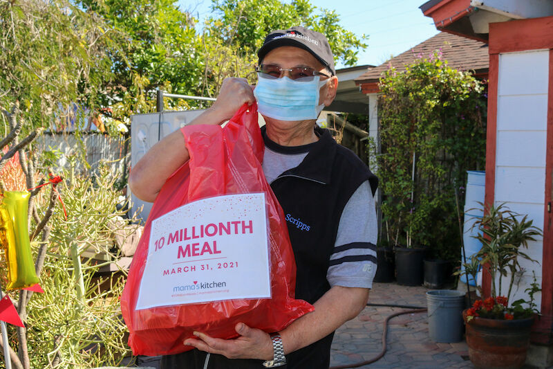 Mama’s Kitchen celebrated a milestone last week when representatives delivered its 10 millionth meal. Mama’s Kitchen CEO Alberto Cortés and Mayor Todd Gloria passed off the commemorative meal to Jimmy G., a Skyline Hills resident and retired respiratory therapist who has used the service since 2019. The nonprofit delivers more than 11,000 medically tailored meals a week to critically ill San Diegans.