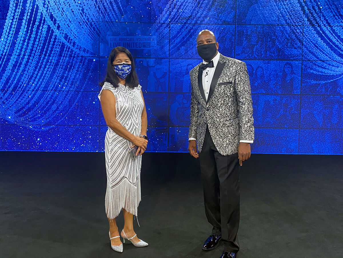 United Way of San Diego County President and CEO Nancy Sasaki with board chair Tony Russell at the organization’s virtual Centennial Celebration.