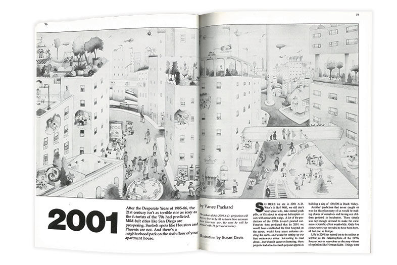 The years 2000 and 2001 used to have an inherently science-fiction quality to them. Rolling over that fourth digit felt unimaginably far away right up until it happened. So maybe we can forgive writer Vance Packard for some of the wilder predictions he made in San Diego Magazine’s January 1979 cover story, “Life in 2001: It’s No Space Odyssey.”