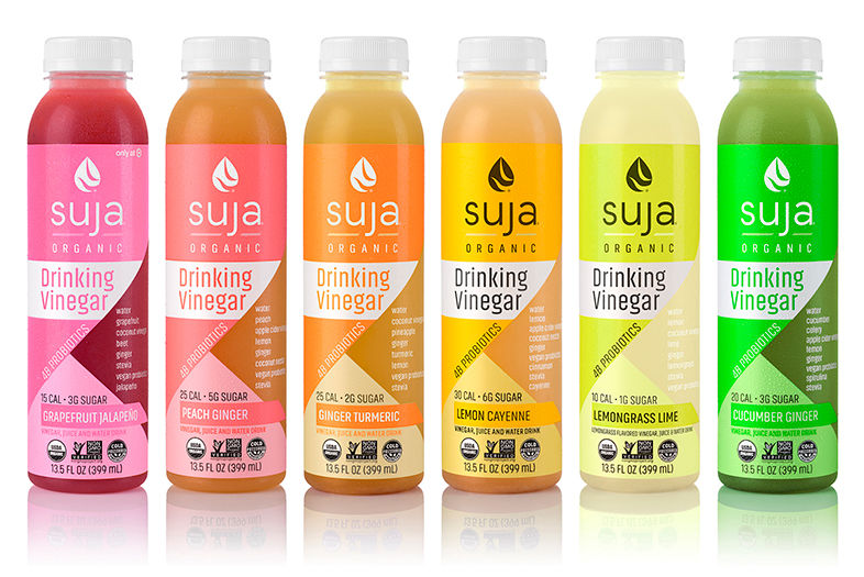 Most recently, Suja unveiled a line of organic Drinking Vinegars, 13.5-ounce blends of organic apple cider vinegar, water, organic purees and juices, and vegan probiotics (from $2.50 each at Whole Foods and Target).