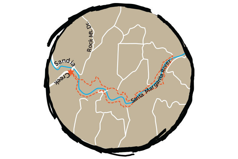 Start at the intersection of Sandia Creek and Rock Mountain drives in Fallbrook. Follow the sandy path along the river, then cross over and loop back along the other side.