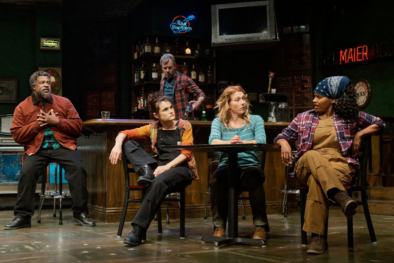 Matt Orduna, Hannah Logan, Jason Heil, Judy Bauerlein, and Monique Gaffney in Sweat by San Diego Repertory Theatre | Photo by Jim Carmody