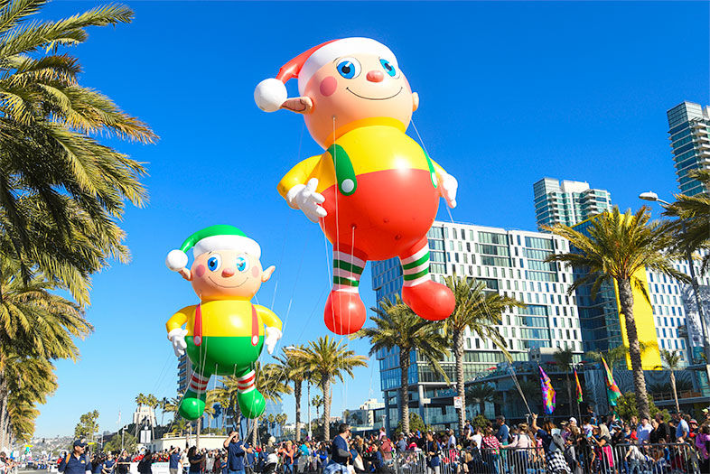 Cue the helium! The Port of San Diego Holiday Bowl Parade returns for a 28th year on December 31, with marching bands, drill teams, and 29 floats. America’s largest balloon parade—pumped with 54,600 cubic feet of helium—begins at 10 a.m., proceeding from the County Administration Center for a mile along Harbor Drive, ending at Pacific Highway.
