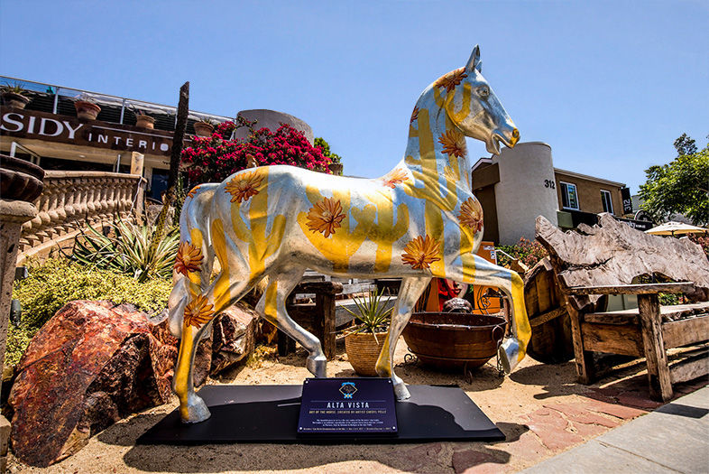 Catch sight of the Art of the Horse installation throughout greater San Diego (including Cheryl Pelly’s Alta Vista, pictured here, on Cedros Avenue in Solana Beach) or hedge your bets to bring one of the beauts home in a charity auction following the races.