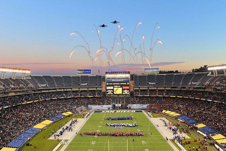 Get your college football fix during the Poinsettia Bowl at the Q, followed by the Stadium Spectacular fireworks extravaganza.