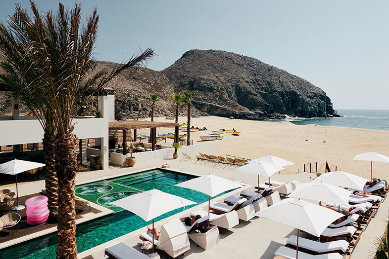 A stark contrast to Cabo, lodging in historic La Paz takes the form of smaller, more intimate beachfront digs like the stunning Playa de la Paz, an enclave of high-design villas overlooking white sand dotted with canopied daybeds and a seaside pool. A personal concierge orchestrates private chef dinners, massages, yoga on the beach—even a trip to owner Jeffrey Curtiss’ seaside ranch for a shoreline gallop. Villa stays start at $600.