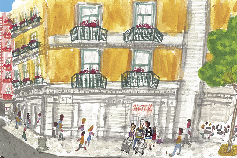 On a recent trip to Barcelona, we opted for the separate-room scenario. The very charming Hotel 1898, chosen for its sweet location on La Rambla and robust history as a former cigar factory in the early 1900s, did not offer many room choices. We booked two rooms, each with a double bed (which in Europe means something cruelly smaller), and naively thought we would each take a kid, swapping nights back and forth, with one parent per kid in each room. Not so cozy, as it turned out. Tweens can be vicious kickers in their sleep. I have scars on my shins from my 11-year-old daughter that rival any hockey player’s.