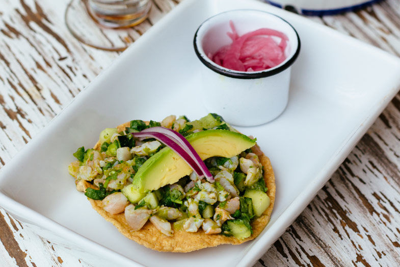 Chef Javier Plascencia’s Erizo, in Tijuana’s Chapultepec neighborhood, greets you with coastal interiors and a menu boasting local seafood and regional ingredients. Grab a seat on their terraza and order up the green shrimp ceviche tostada. The flavors are bright and refreshing, but pack a punch in each bite. Tender shrimp are doused in fresh lime juice, with bits of serrano peppers, tomatillos, and cilantro, hence the name. It pairs nicely with a sparkling lemonade or Baja craft brew.